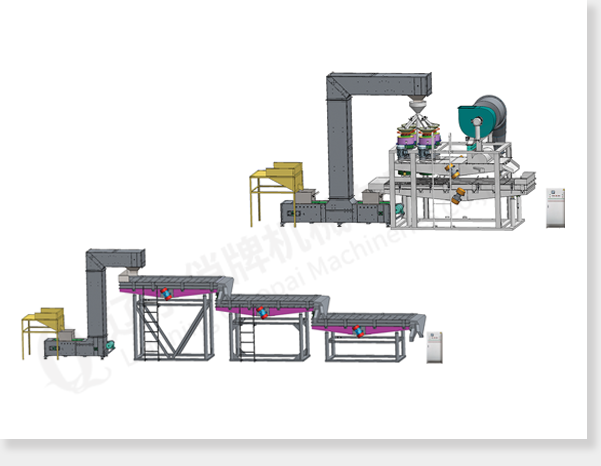 分(fen)級單(dan)元:上料斗,提升機和分級篩(數量取決于原料情況)。